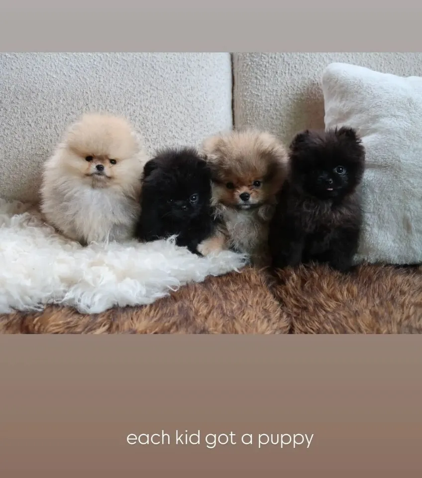 Різдво в родині Кардашян-Вест цьогоріч пройшло з розмахом, який спровокував справжню бурю в соцмережах. Кім подарувала своїм чотирьом дітям по цуценяті померанського шпіца. На своїй сторінці в Instagram зірка показала чотирьох пухнастиків, лаконічно підписавши: «Кожна дитина отримала по цуценяті».